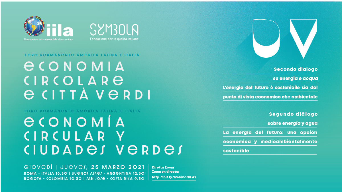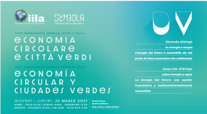 Il 25 marzo ore 16.30 ci sarà il secondo webinar su economia circolare e città verdi, in collaborazione con IILA -Organizzazione internazionale italo-latina americana, con focus su energia e acqua.Scopri il programma e come registrarsi. In diretta face book su www.symbola.net