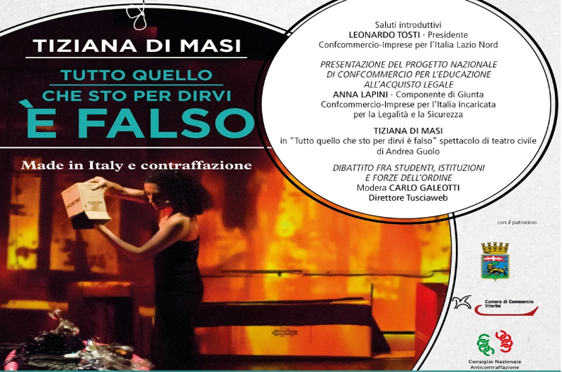 Il progetto, che segue un format standard, prevede in ogni città prescelta un incontro – al quale parteciperà la componente di Giunta nazionale della Confcommercio incaricata per la legalità e la sicurezza, Anna Lapini, per l’illustrazione del progetto e delle iniziative collegate – e la rappresentazione dello spettacolo teatrale “Tutto quello che sto per dirvi è falso” (cfr. il sito http://tuttofalso.org/) , un esempio di teatro civile che affronta il tema della contraffazione in tutte le sue sfaccettature.