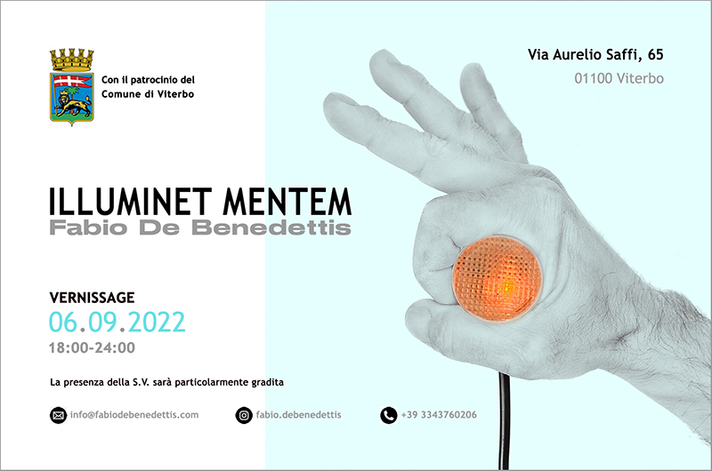 Proseguono le mostre personali presso lo Studio De Benedettis, per il secondo incontro martedì 6 settembre 2022, Fabio De Benedettis presenta il progetto Illuminet mentem una serie di lightbox, assemblaggi di luci al neon e fotografe in bianco e nero in cui lo spazio della cornice viene evaso per entrare nello spazio reale,