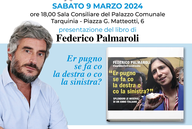 Sabato 9 marzo, alle ore 18, presso la Sala degli Affreschi del Comune di Tarquinia,Federico Palmaroli, in arte Osho, presenterà il suo ultimo libro “Er Pugno se fa co la destra o co la sinistra?”.