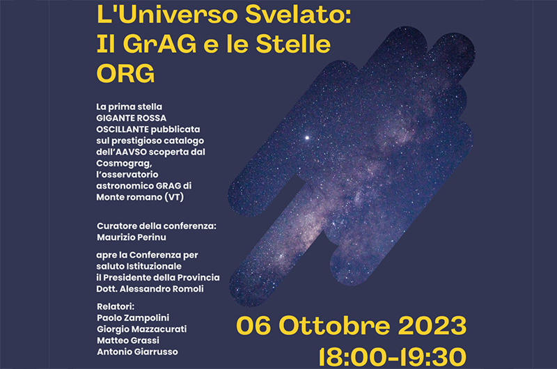 Si discuterà della scoperta effettuata dall’associazione della nuova famiglia di Giganti rosse oscillanti, scoperta pubblicata sul prestigioso catalogo mondiale dell’AAVSO. American Association of Variable Star Observers.