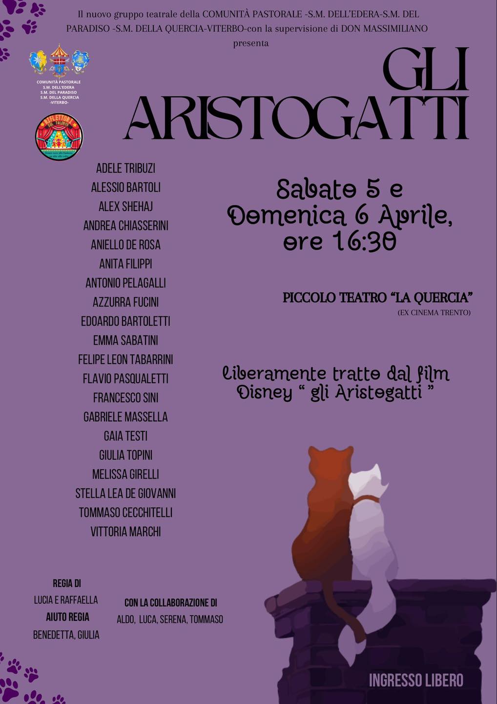 “Gli Aristogatti” il teatro per i bambini all’ex Cinema Trento rinominato Piccolo Teatro La Quercia