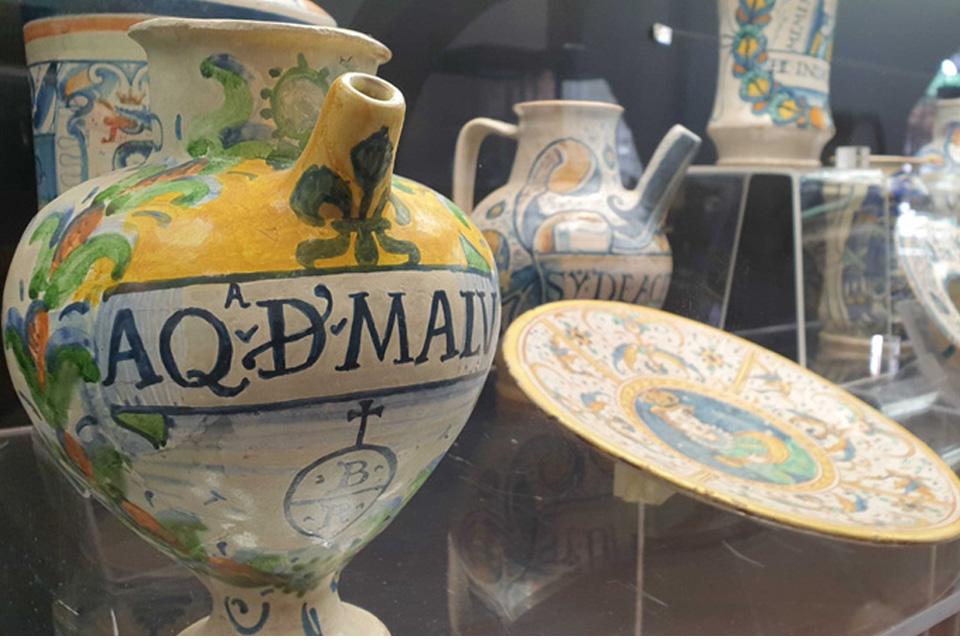 I visitatori potranno ammirare le evocative raffigurazioni e i ricercati cartigli delle ceramiche da spezieria del XV, XVI e XVII secolo e conoscere il significato simbolico delle immagini presenti in orcioli, albarelli e vasi da farmacia.