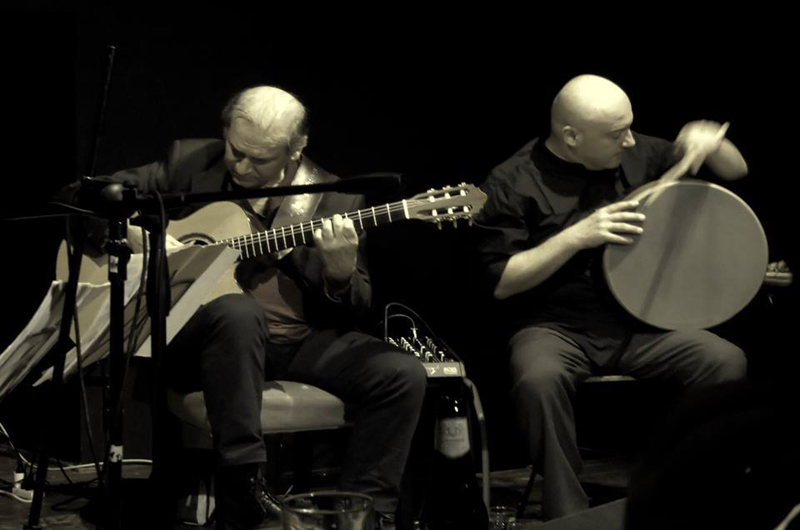 Una combinazione unica di chitarra acustica e tamburi a cornice, una miscela di generi che tocca la world music, il jazz e il folk, e genera un suono mediterraneo dalle molte sfaccettature.