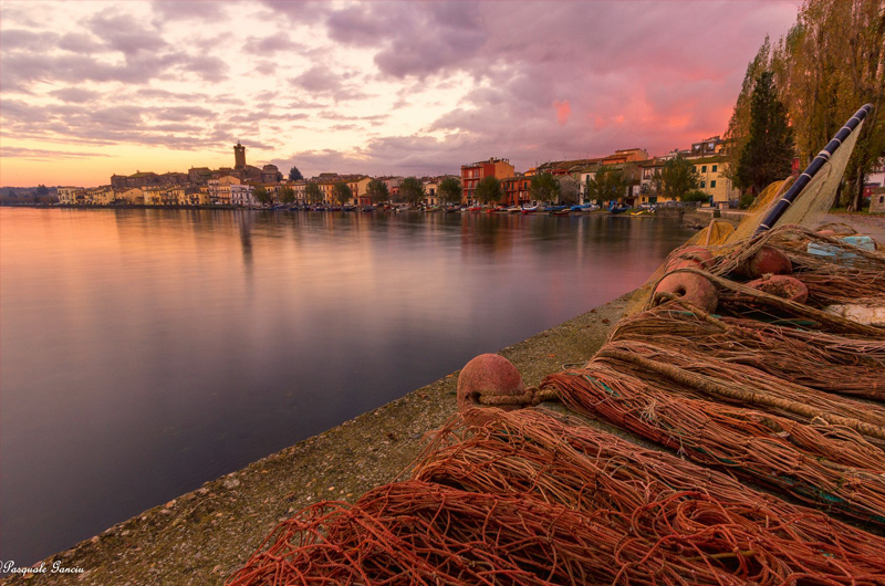 Una traversata del lago per andare a scoprire le isole Bisentina e Martana sotto la luce dorata del tramonto, accompagnati dal racconto storico-artistico e naturalistico di Vera Risi giornalista, scrittrice, guida turistica nazionale. Dopo la circumnavigazione delle isole si raggiunge la costa di Marta dove si sbarca per cenare al Pirata. Un raffinato menu di lago accoglie il gruppo dall`antipasto al dessert, bevande incluse. Dopo cena si rientra in battello al porto di Capodimonte costeggiando il villaggio dei pescatori di Marta e la Rocca Farnese di Capodimonte, ed ascoltando alcuni stralci letterari dedicati al lago e al territorio.
