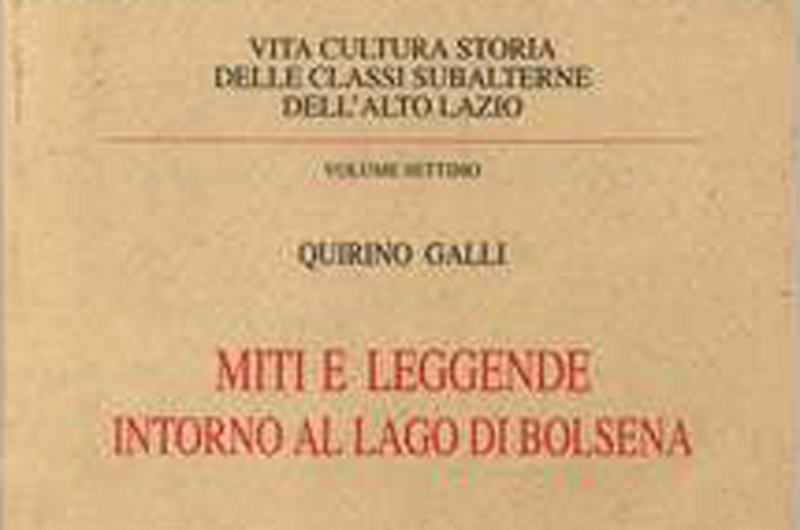 Il prossimo 27 novembre, alle 16, presso il centro diocesano di documentazione al palazzo vescovile di Viterbo sarà presentato il libro di Quirino Galli “Miti e leggende intorno al lago di Bolsena”, relatori: Marcello Arduini, Università della Tuscia e Pino Galeotti, regista Rai.