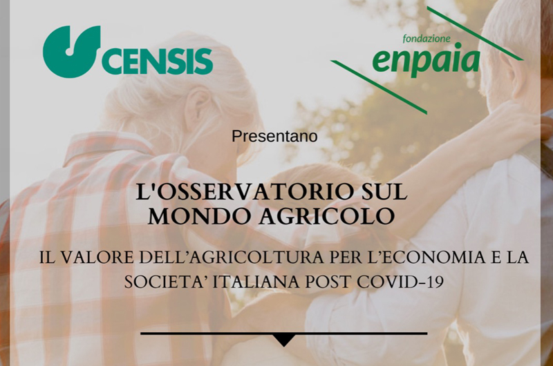 Mercoledì 15 luglio, alle ore 11.00, presso il canale Youtube Ital TV, l’Osservatorio sul mondo agricolo Enpaia-Censis presenterà il Primo Rapporto dal titolo: “Il valore dell’agricoltura per l’economia e la società italiana post Covid-19”. Il Rapporto evidenzia l’importanza dell’agricoltura per il rilancio dell’economia e dell’occupazione nel post Covid-19, in quanto rappresenta uno dei motori di crescita del Paese. L’obiettivo della ricerca è riflettere sul valore economico e sociale dell’agricoltura nelle sfide complesse del post Covid-19.