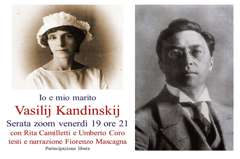 Nina e Vasilij Kandinskij saranno i protagonisti dell’incontro. Questo è il link per accedere alla serata dedicata a Kandinskij. L’appuntamento è su Zoom venerdì 19 marzo alle ore 21.00. Interventi di Rita Camilletti e Giuseppe Cori, testi e narrazione di Fiorenzo Mascagna. La partecipazione è libera per chi lo desidera: