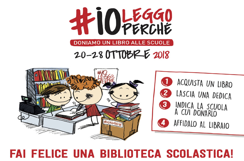 Torna anche quest’anno Ioleggoperché, dal 20 al 28 ottobre l’iniziativa nazionale di raccolta di libri per le biblioteche scolastiche. Ci sarà una settimana di tempo per andare in libreria,nella vostra libreria a scegliere o farvi consigliare un libro dalla libraia, scrivere una piccola dedica e donarlo a un futuro lettore.