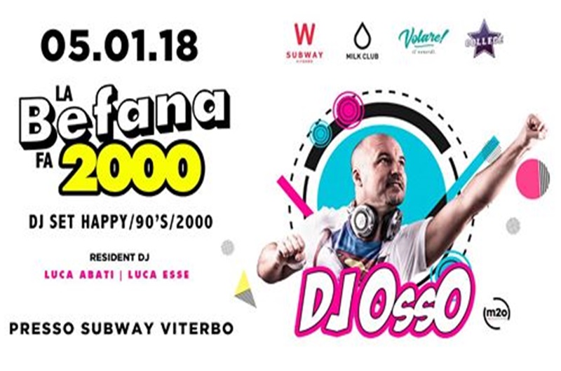 Venerdì 5 gennaio La Befana fa 2000 con Dj OSSO e l’omaggio donna.