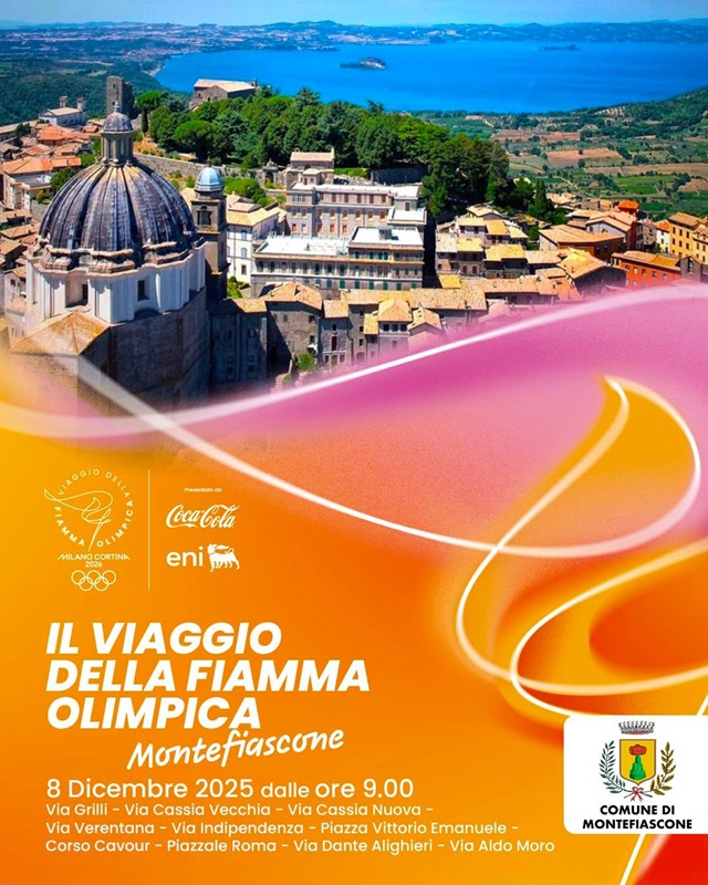 La Fiaccola Olimpica attraverserà le strade ddi Montefiascone in occasione della promozione e presentazione della VII edizione dei Giochi Olimpici Invernali Milano Cortina 2026 , che si terranno in Italia dal 6 al 22 febbraio 2026.