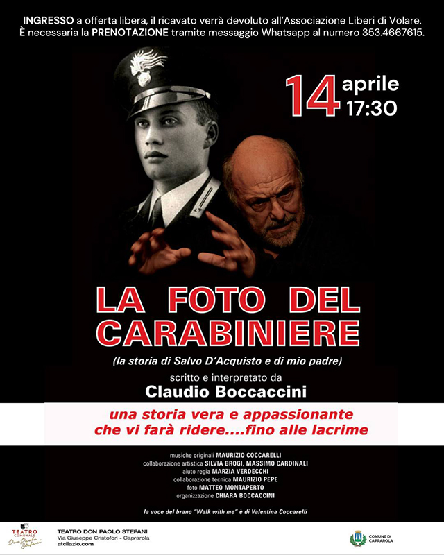 LA FOTO DEL CARABINIERE una commedia  scritta, diretta e interpretato da Claudio Boccaccini. In scena  domenica 14 APRILE 2024 alle ore 17.30