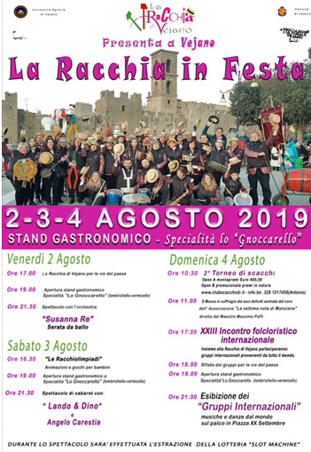 L’agosto di Vejano parte a piena festa, il 2-3-4 agosto “La Racchia in Festa” anima il borgo con spettacoli di vario genere.