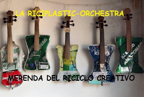 LA RICIPLASTIC-ORCHESTRA DI HUMUS SAPIENS, che si esibirà SABATO 26 GENNAIO sul palco del Cosmonauta, suonando gli strumenti musicali costruiti dai partecipanti alla Merenda del Riciclo creativo. Vi aspettiamo numerosi, per suonargliene di belle alla plastica!!!
