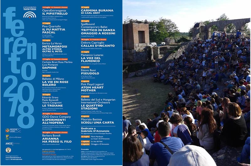 Undici spettacoli all’interno del teatro romano, otto nello spazio adiacente le antiche terme. Ferento potrà così miracol mostrare in tutta la sua bellezza.