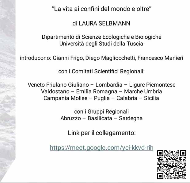 Giovedì 12 marzo, alle ore 21.00, è in programma “La vita ai confini del mondo e oltre”, seminario in video conferenza con Laura Selbmann, docente de Dipartimento di Scienze Ecologiche e Biologiche dell’Università degli Studi della Tuscia.