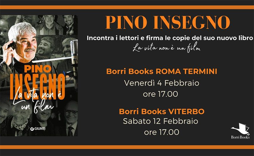 Appuntamento con Pino Insegno. L’attore, comico e doppiatore di successo, sarà presente alla nuova libreria Borri Books per incontrare i lettori e firmare le copie del suo nuovo libro “La Vita Non è un film” edito da Giunti.