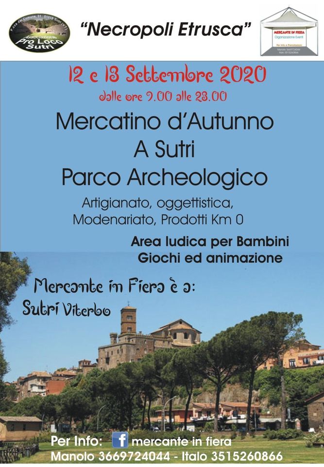 Mercatino d’Autunno a Sutri ne Parco Archeologico, con Stand di Antiquariato, Modernariato, Prodotto a Km 0. Il 12 settembre dalle 9.30 al tramonto