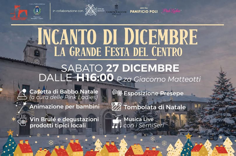 Sabato 27 Dicembre alle ore 16.00 nella principale piazza Piazza G. Matteotti , il cuore di Montalto di Castro si riempie di magia con Babbo Natale, animazione, presepe, musica dal vivo, tombolata e sapori locali. Evento organizzato dal Comitato Centro Storico, con il contributo del Comune di Montalto di Castro.