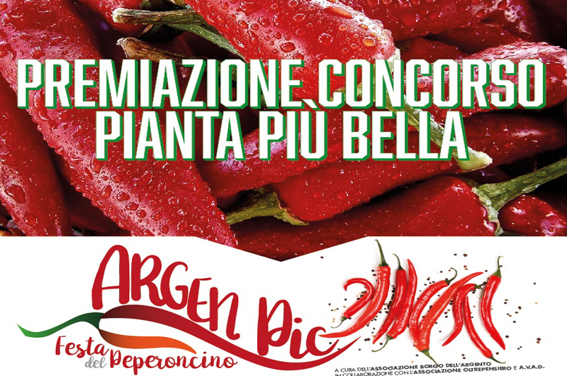 La Mostra-Concorso, organizzata dall’Associazione Borgo dell’Argento (Delegazione dell’Accademia Italiana del Peperoncino) in collaborazione con l’Associazione Culturale Oltrepensiero e l’A.V.A.D. con il Patrocinio del Comune e dell’Università Agraria di Tarquinia e dell’Arsial nell’ambito della 4^ edizione della Festa del Peperoncino ArgenPic (16/17/18/19 e 24/25 Agosto) è aperta a tutti gli amatori-coltivatori non professionisti delle piante di peperoncino. Verranno ammesse alla Mostra-Concorso le piante di Diavolicchio Calabrese consegnate e certificate agli interessati il 25/03/2018 durante l’Happening “Aspettando… ArgenPic” e anche quelle di altre varietà purché coltivate in proprio e per fini non professionali.