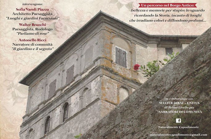 Sabato 23 pomeriggio la comunità formativa si sposterà a Capodimonte con “Naturalmente Capodimonte”, inserita fra le attività del denso modulo VIII del master , nell’occasione si seguirà il convegno `Rose e giardini sul lago` organizzato dalla rete d`imprese fra i relatori, insieme con Antonello Ricci, l`esperta di giardini e paesaggi Sofia Varoli Piazza, docente del master.