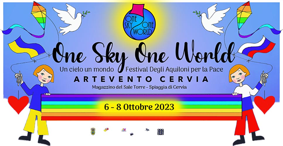 Dopo il successo della sua 43a edizione premiata in primavera del numero record di 600.000 visitatori, ARTEVENTO CERVIA presenta la prima edizione del suo nuovo spin off autunnale, intitolato One Sky One World – Un Cielo Un Mondo – Festival degli Aquiloni per la Pace in programma dal 6 all’8 ottobre 2023 fra il comparto dei Magazzini del Sale e la spiaggia di Cervia.