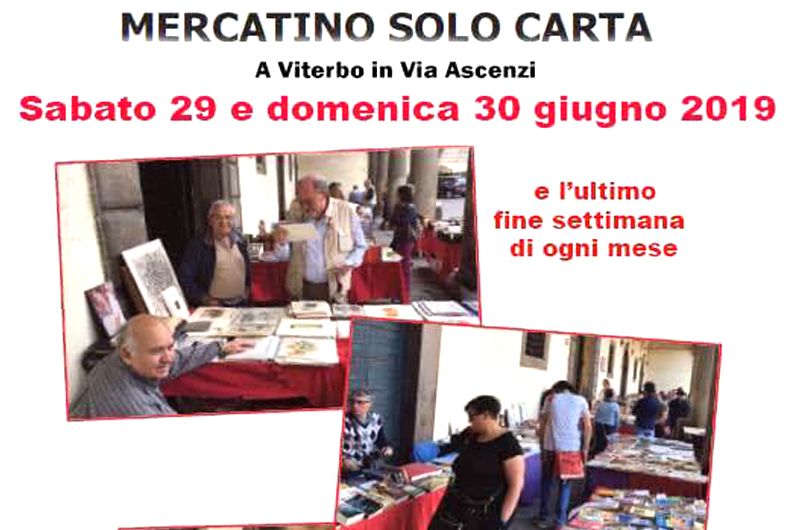 Esposti sulle bancarelle ci saranno tanti libri rari, fuori commercio, ogni volta diversi, frutto della laboriosa ricerca degli espositori. Poi ancora stampe antiche, documenti cartacei di vario genere, spartiti musicali d’epoca, cartoline d’epoca viaggiate e non, antichi manifesti e pubblicazioni fuori commercio, riguardanti la storia della città e della provincia di Viterbo. Vale la pena farci un salto, anche soltanto per vedere.