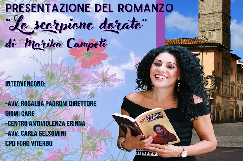 Dopo aver presentato il romanzo “Il segreto di vicolo delle belle”, venerdì 24 giugno alle ore 17.30 l’autrice romana torna a Viterbo con il romanzo “Lo scorpione dorato” vincitore del premio città di Arcore 2021 e del premio Dicorato 2022. La presentazione avverrà alla Domus La Quercia in viale Fiume 112 – ospitata da Giomi Care nella sala conferenze.