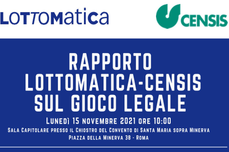 Lunedì 15 novembre, alle ore 10.00, presso la Sala Capitolare di Palazzo della Minerva del Senato della Repubblica, si terrà la presentazione del ‘Rapporto Lottomatica-Censis sul Gioco Legale’ in Italia. L’obiettivo della ricerca è raccontare il valore economico e sociale del gioco legale: dai profili di responsabilità sociale all’occupazione, dalla fiscalità alla lotta all’illegalità.