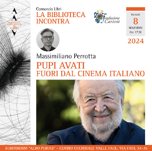 Il prossimo appuntamento della rassegna “La Biblioteca incontra” sarà venerdì 8 novembre, sempre alle 17.30, e vedrà la presenza di Massimiliano Perrotta – con il suo libro “Pupi Avati fuori dal cinema italiano” (Sabinae Edizioni) – in dialogo con il regista.