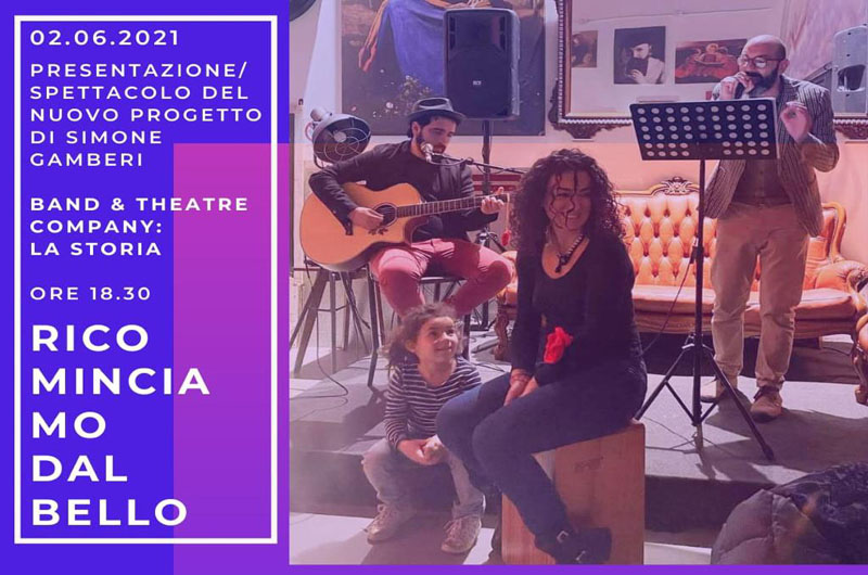 Il 2 giugno alle ore 18.30 al Bistrot del Teatro, sempre più frizzante,  presentazione dello spettacolo parte del progetto dell’artista Simone Gamberi  Band & Theatre Compamy: La Storia “Ricominciamo dal bello”.Mercoledi prossimo ritorna lo spettacolo con Simone Gamberi voce e versi, Roberta Sperduti,percussioni,Dario Martellini, fiati,Simone Precoma, versi e parole,Noemi Berardinelli, voce, Ester Galli, voce e parole. Se volete sentire la storia accompagnata dalla buona musica con aperitivo live nella Galleria del TeatroLo spettacolo fa per voi.