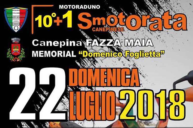 Per l’undicesimo anno torna a Canepina un evento da non perdere per tutti gli appassionati di moto: la “Smotorata – Memorial Domenico Foglietta”, un motoraduno organizzato dal gruppo Fazza Maia e in programma domenica 22 luglio 2018.