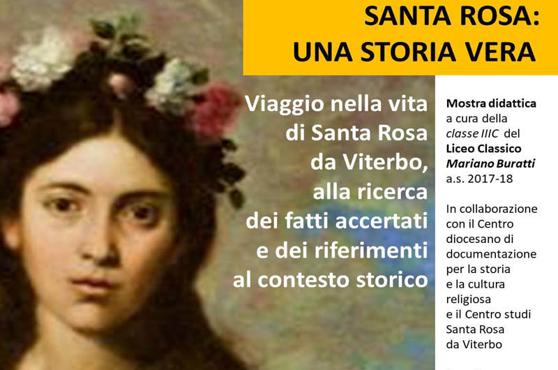 Apre i battenti nel pomeriggio del 28 agosto la mostra “S. Rosa, una storia vera” che presenta le ricerche di alcuni studenti del Liceo classico “Mariano Buratti” (classe IIIC nell’anno scolastico 2017-18) sulla vita della patrona viterbese.
