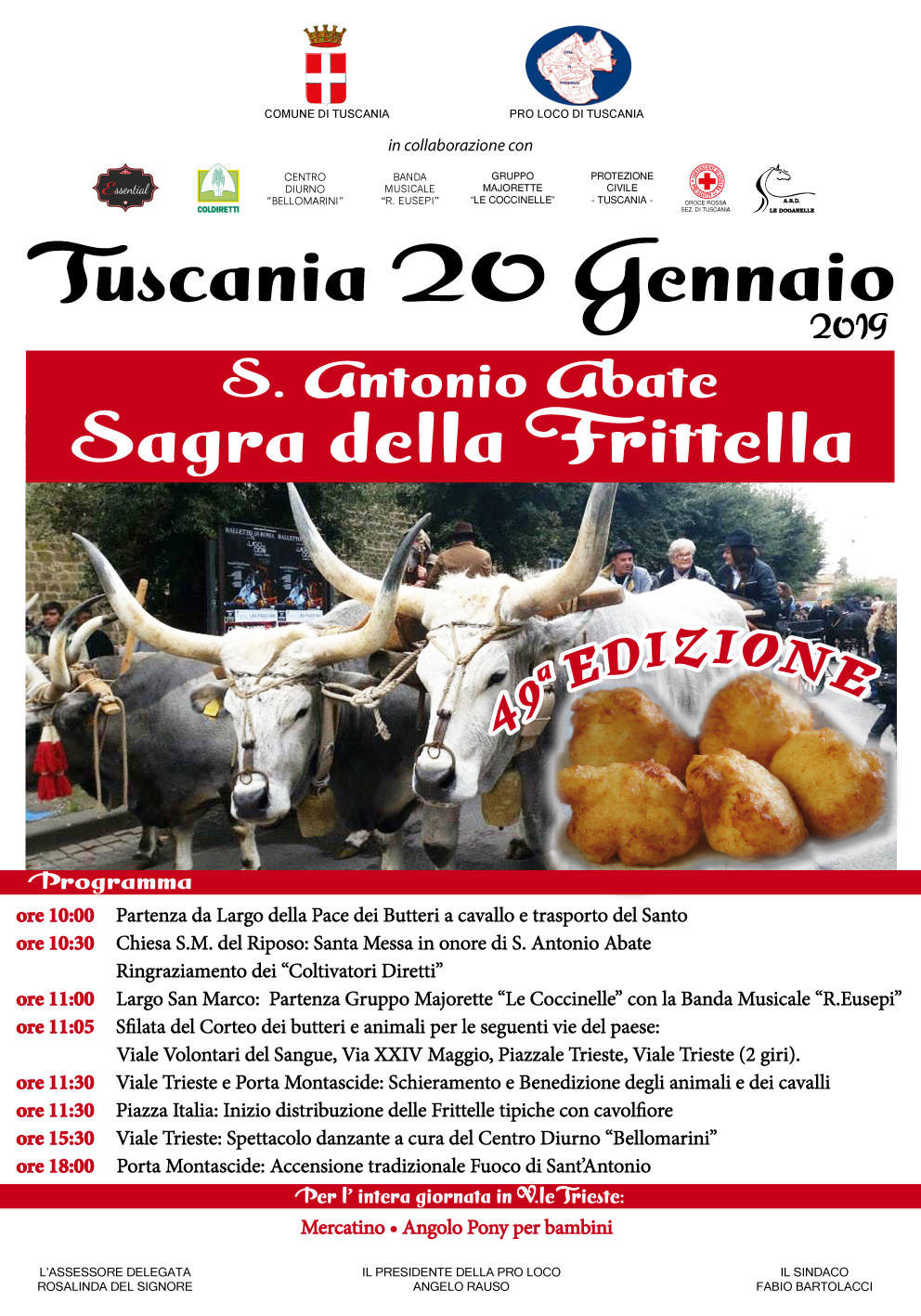 Sagra della Frittella il 20 gennaio a Tuscania. Alle 11,30, dopo la sfilata dei butteri, la benedizione degli animali, in piazza verranno distribuite le Frittelle con cavolfiore.