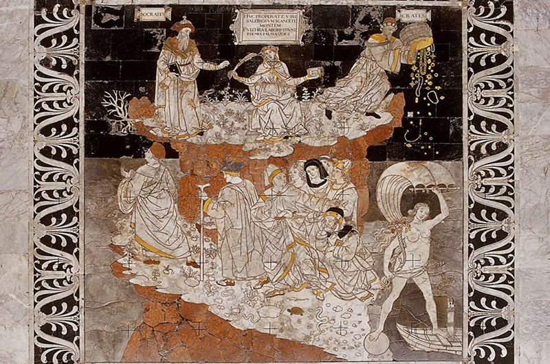 L’itinerario completo OpaSiPass consente, oltre la visita del Pavimento in Cattedrale, quella al Museo dell’Opera, e tra i servizi offerti saranno inoltre disponibili visite guidate con professionisti del settore in varie lingue.Il pavimento è il risultato di un complesso programma iconografico realizzato attraverso i secoli, a partire dal Trecento fino all’Ottocento, oltre cinquanta in tutto, i cui cartoni preparatori furono disegnati da artisti, quasi tutti “senesi”, fra cui il Sassetta, Domenico di Bartolo, Matteo di Giovanni, Domenico Beccafumi, oltre che dal pittore umbro Pinturicchio, autore