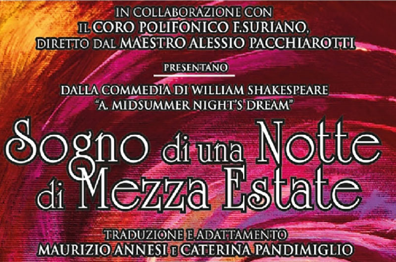 Il Coro Polifonico F. Suriano diretto dal Maestro Alessio Pacchiarotti presenta il 20 agosto  alle ore 21.30 in piazza Vittorio Emanuele a Soriano nel Cimino, dalla commedia di Shakespeare, Sogno di una notte di mezza estate, con la regia di Maurizio Annesi. A cui ha dato l’apporto con la sua opera “Scenderemo nel gorgo muti” l’artista sorianese Paolo Berti. L’evento gode del patrocinio di Comune e Pro Loco di Soriano nel Cimino.