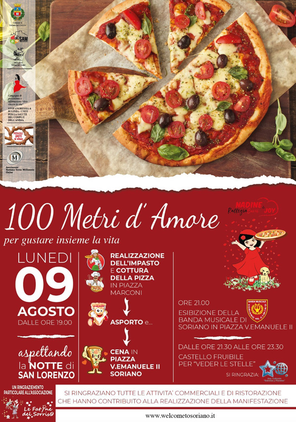Soriano, prelibatezze gastronomiche, musica, cultura e salute: è la prima edizione di “100 metri d’Amore per gustare insieme la Vita”.
