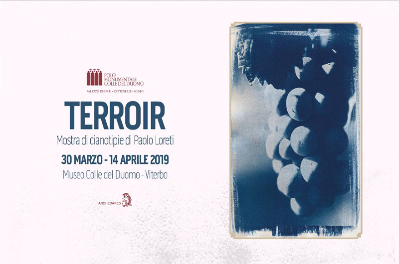 Da sabato 30 marzo a domenica 14 aprile, il Museo Colle del Duomo di Viterbo ospiterà la mostra di cianotipie Terroir del dott. Paolo Loreti che verrà inaugurata durante l’evento Arte e vino al museo 2019, alle ore 17:30, con una dimostrazione pratica su come avviene il procedimento di stampa fotografica da cui nasce una cianotipia.