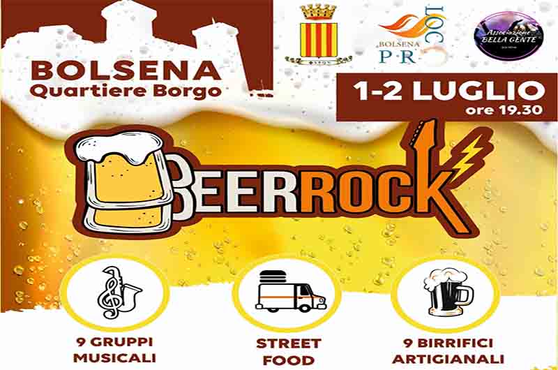 Torna a Bolsena BeerRock, la festa delle birre artigianali organizzata dall’associazione Bella Gente. La cornice, il borgo medievale dominato dalla Rocca Monaldeschi della Cervara. Le date, l’1 e il 2 luglio, dalle 19.30, per una due giorni di degustazioni, musica e street food. Tra i vicoli e le piazzette del cuore di Bolsena, lungo un itinerario del buon bere, nove produttori locali proporranno le loro birre artigianali, con assaggi e degustazioni per far conoscere ai visitatori il mondo dei mastri birrai e i segreti per preparare una birra eccellente. La birra sarà accompagnata dai prodotti dello street food e da tanta musica rock dal vivo, con nove band pronte a riempire di note l’atmosfera. BeerRock ha il sostegno della Pro loco Bolsena e del Comune di Bolsena. “Siamo un’associazione giovane, nata nel 2019 con la prima edizione di BeerRock – affermano i volontari -. La pandemia non ha poi permesso di organizzare per due anni la festa e oggi torniamo più carichi che mai. Proponiamo alla città una manifestazione di qualità dedicata alle birre artigianali e ai piccoli produttori del nostro territorio e delle regioni confinanti, scelti dopo un’attenta selezione. Non potevano mancare la musica rock ad animare le due serate e lo street food. Ringraziamo l’Amministrazione comunale e la Pro loco Bolsena per supportare il nostro evento”.