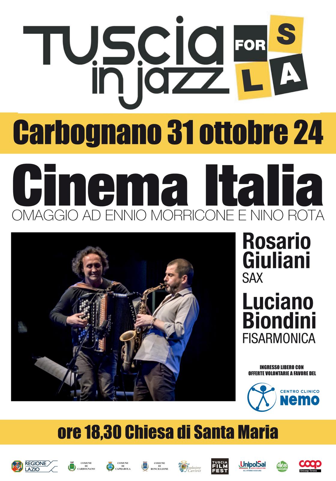 A Carbognano, giovedì 31 ottore, presso il Cinema Italia, il jazz vibrante omaggia due grandi Ennio Morricone e Nino Rota, con il sax di Rosario Giuliani e la fisarmonica di Luciano Biondini.