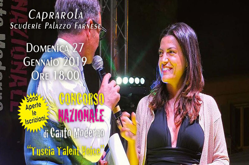 Alla ricerca dei giovani Talenti, questo è lo scopo del Tuscia Talent Voice, giunto alla sesta edizione, che quest’anno per motivi organizzativi si terrà presso la Sala delle Scuderie di Palazzo Farnese, Via S. Rocco – 01032 Caprarola (VT) – Domenica 27 gennaio 2018 – Ore 18:00.