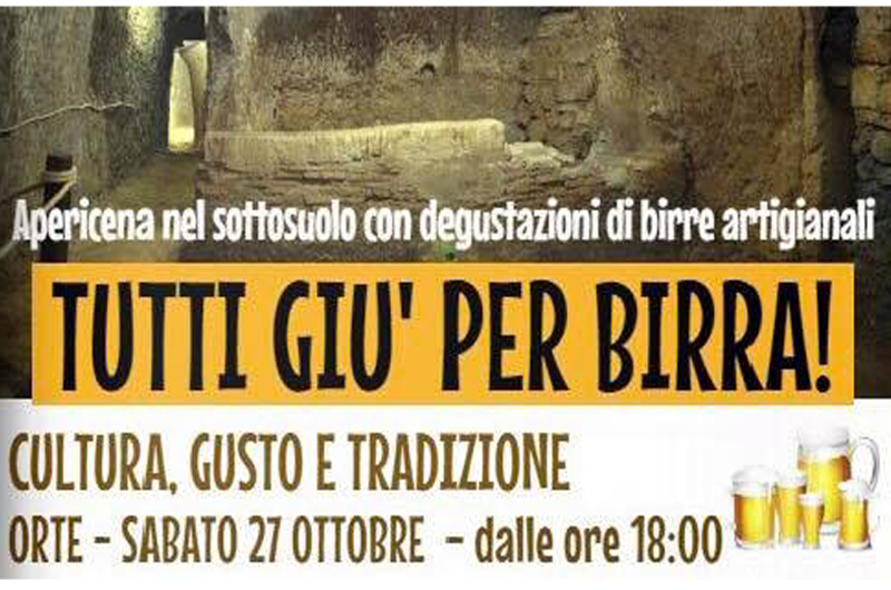 La Pro Loco Orte in collaborazione con l’Ass.ne Veramente Orte, il Comitato Festeggiamenti Classe ‘78 ed il patrocinio del Comune di Orte presentano “Tutti giù per birra !”.Sabato 27 ottobre dalle ore 17.00.