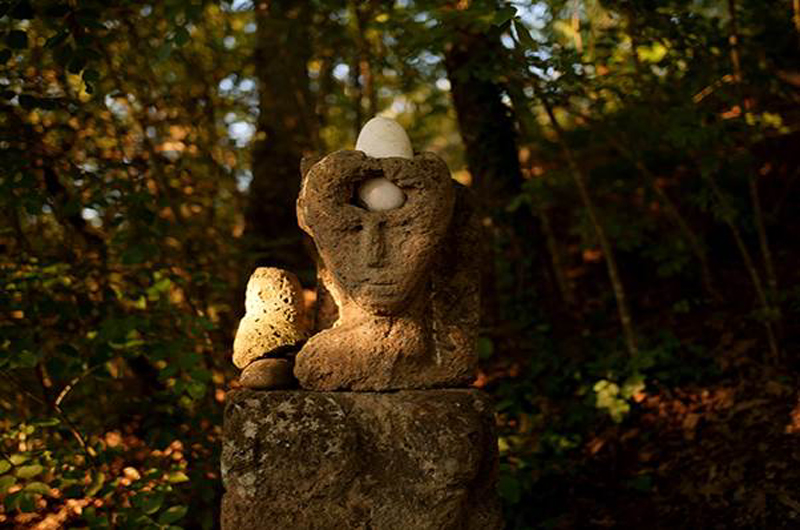 Un Bosco dove oltre alle istallazioni di Arte nella Natura, la manutenzione selettiva del dato naturale mette in evidenzia le antiche testimonianze paesistiche e rupestri della millenaria storia di antropizzazione di questo luogo magico.