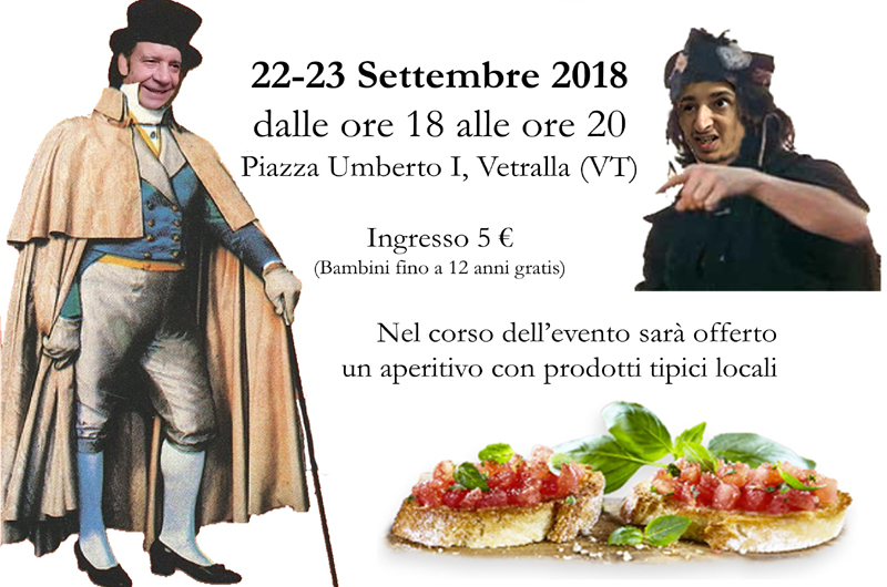 Vetralla, il 22-23 settembre 2018, si sveglierà ai tempi del marchese del Grillo. Il celebre grido: “S’è svegliato” darà vita ad una ricostruzione storica della vita quotidiana nei primi anni dell’Ottocento, quando Vetralla era stata annessa all’Impero francese. È anche il periodo di ambientazione del celebre film, del 1981, “Il marchese del Grillo”, con Alberto Sordi e Paolo Stoppa, uno dei film più amati della storia del cinema italiano. Il film fornisce lo spunto per alcune scene teatralizzate, recitate dai celebri personaggi del capolavoro di Mario Monicelli.