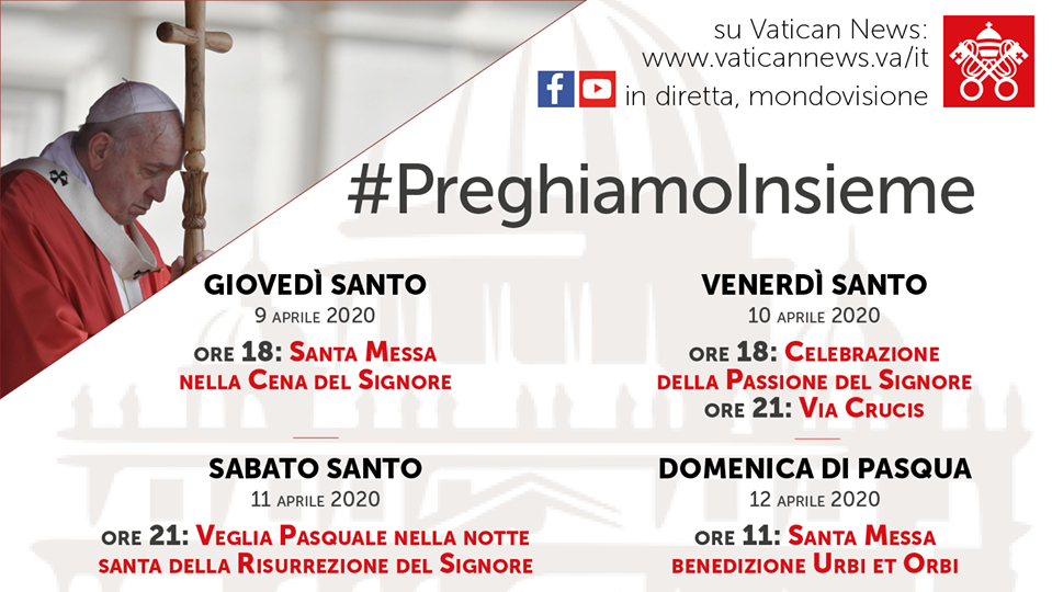 Via Crucis non si terrà al Colosseo, ma in piazza San Pietro: scenografia non meno suggestiva, ma anche stavolta senza fedeli. Le meditazioni sono affidate ai detenuti del carcere Due Palazzi di Padova: tra loro un ergastolano al 41bis, una famiglia vittima di omicidio, un magistrato di sorveglianza, la madre di un carcerato, la figlia di un ergastolano, un frate volontario e un poliziotto.