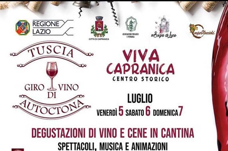 L’evento di apertura sarà “Giro di Vino Tusciautoctona” che propone l’assaggio di venti vini provenienti da case vinicole del nostro territorio, le eccellenze, presso sei punti degustazione dislocati all’interno del centro storico di Capranica, con la presenza di altrettanti sommelier e di alcuni dei produttori.