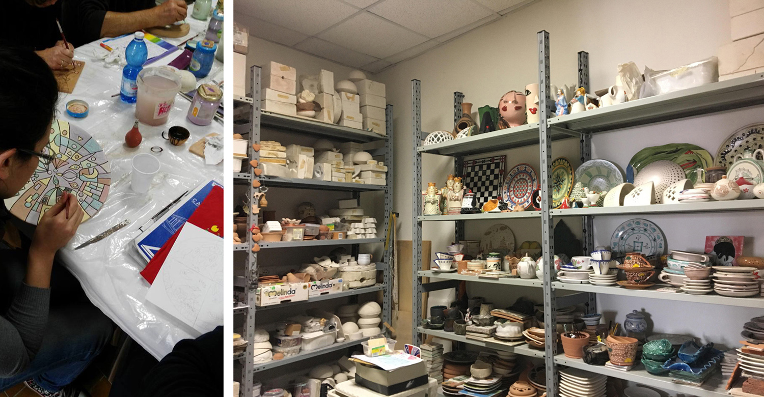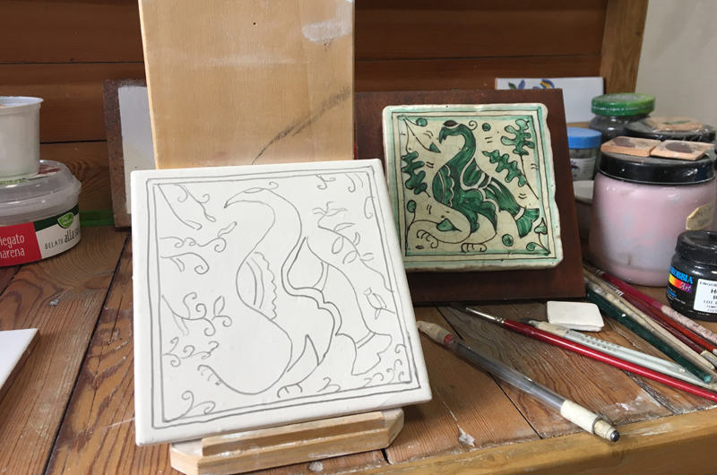 This week, I went to a workshop in a ceramics lab in Viterbo. I went to one of the group workshops to check it out, and had the opportunity to create some lovely pieces and to learn about the process. Upon arriving, I was shown to a table and given some clay to work with. One of the instructors/artists showed me how to prepare the clay for molding and I got started. The workshop wasn’t too crowded; Only a few other people were there and working diligently on their pieces. The walls of the room were covered with plates and tiles and other ceramic art, all beautifully and carefully painted to draw inspiration from. I decided to make a mug and was given a mold to shape the clay into the right shape. After it was formed and molded correctly, the clay was ready for drying and firing. Since I had a bit more time, I started working on a tile as well. The instructor showed me the different types of glazes that she was mixing in the back room. There was a transparent type that allows for designs to show through the glaze, and there was a solid kind. She covered a tile with the solid glaze and then gave it to me to paint. It was fun and relaxing to design the tile. I drew a design on it with a pencil to make an outline to paint over once the clay has been fired. A little bit later I had to leave, but It was a lovely way to spend the morning. I can’t wait to see how the pieces turn out. If you are looking for a relaxing a fun way to spend the day or enjoy creating art, I recommend trying out ceramics. The people were so lovely and welcoming; It’s a great environment to get started creating or to practice your skills.