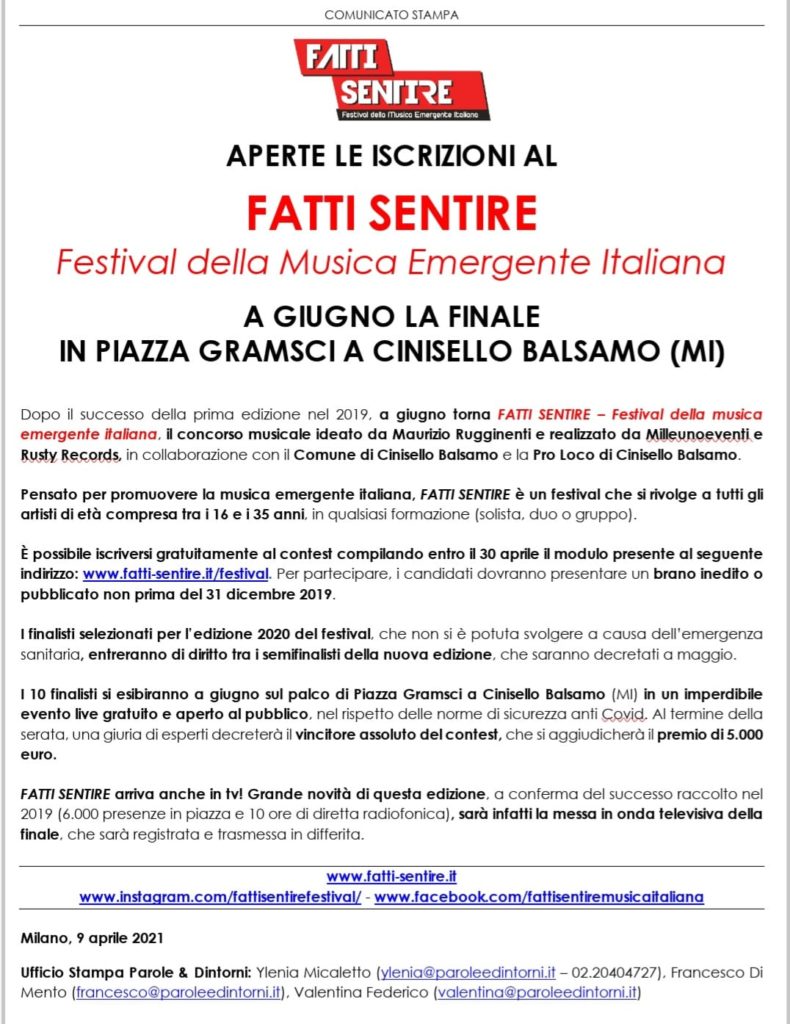 Il Fatti Sentire Festival è un concorso musicale pensato per promuovere la musica emergente Italiana.
