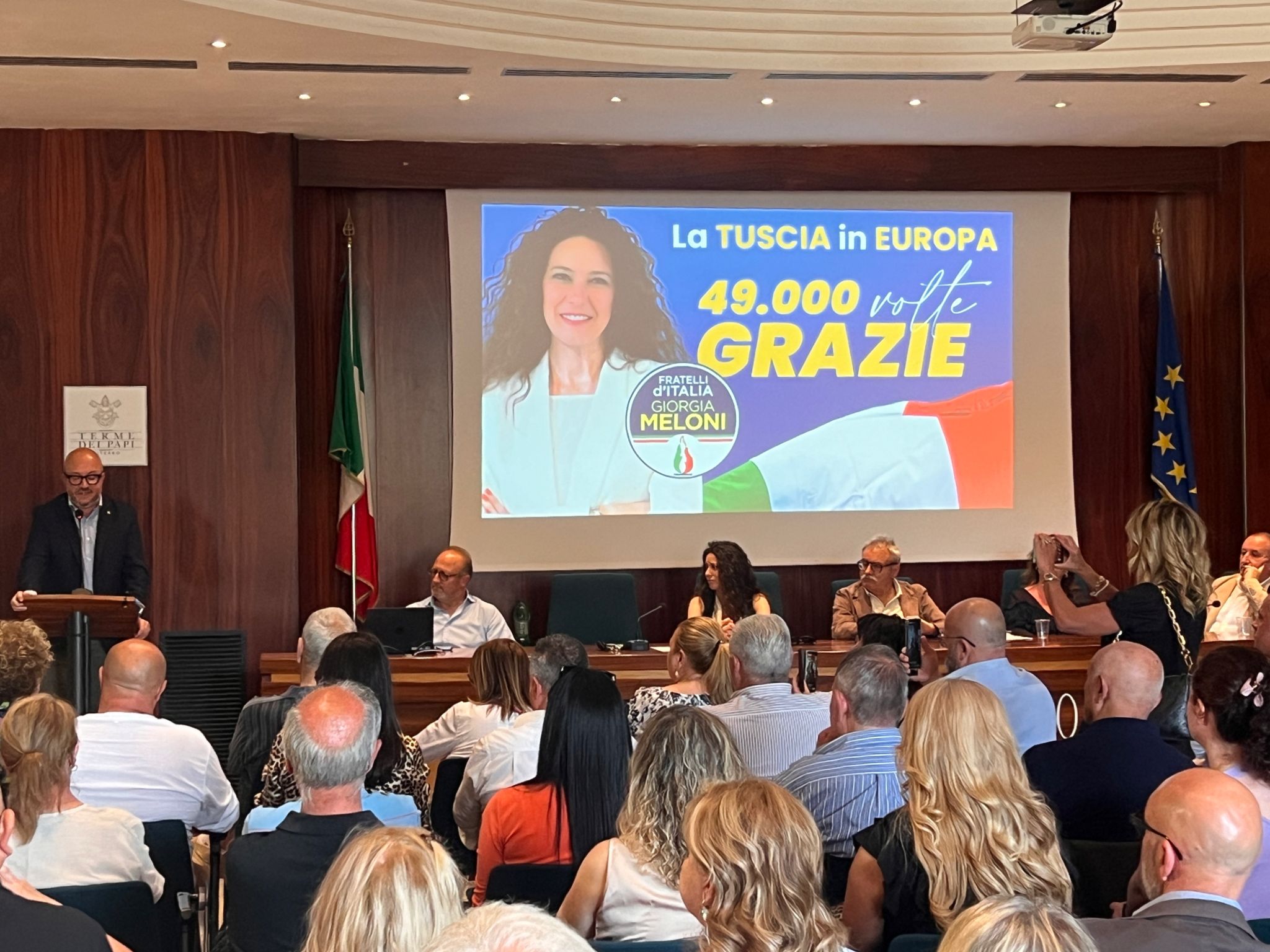 Una sala gremita presso le Terme dei Papi ha accolto ieri sera la celebrazione per l’elezione di Antonella Sberna al Parlamento Europeo. L’evento ha visto la partecipazione entusiasta di sostenitori e membri del partito, sottolineando il risultato storico ottenuto nella provincia di Viterbo.