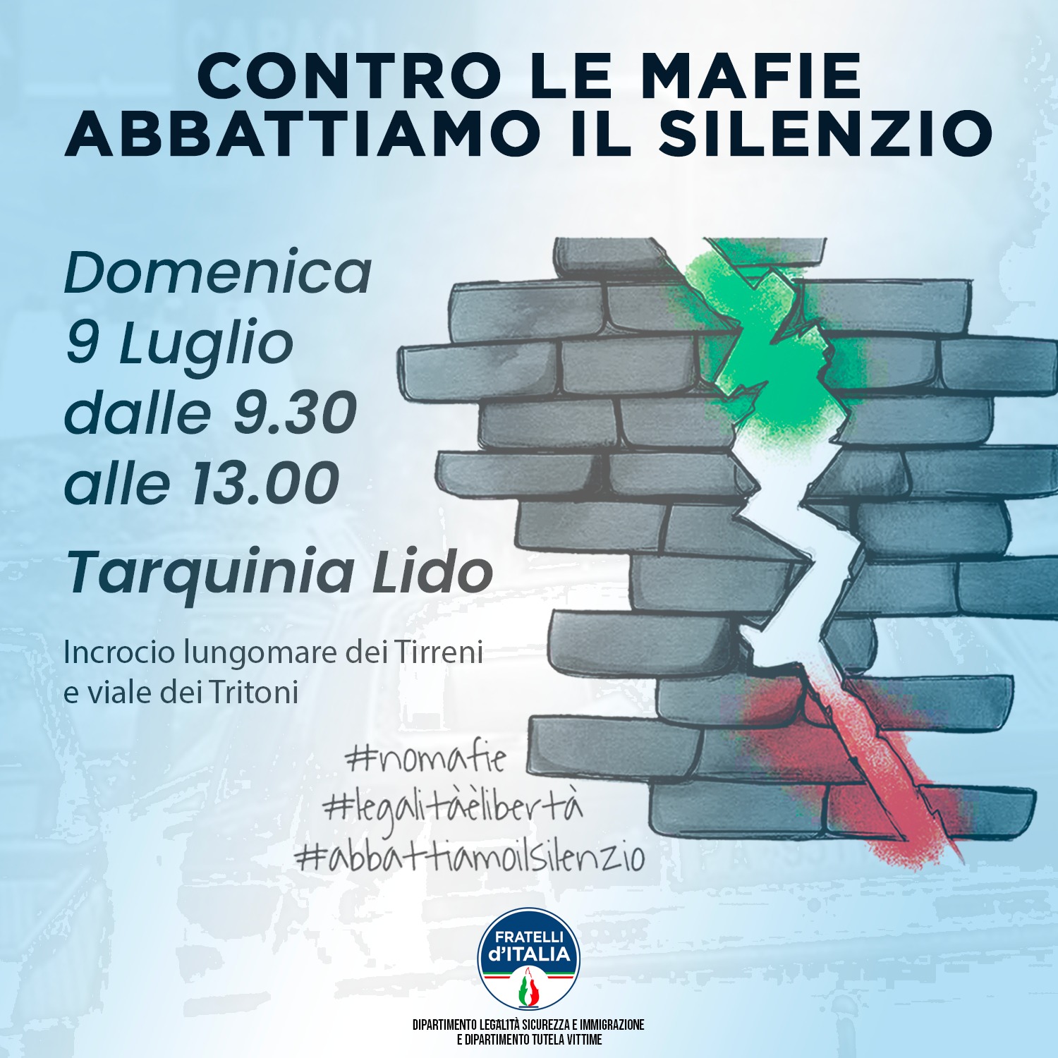 L’obiettivo è quello di sensibilizzare, soprattutto i più giovani, su un pericolo troppo spesso sottovalutato, quello delle mafie, alle quali FdI lancia il messaggio “Contro le mafie abbattiamo il silenzio”.
